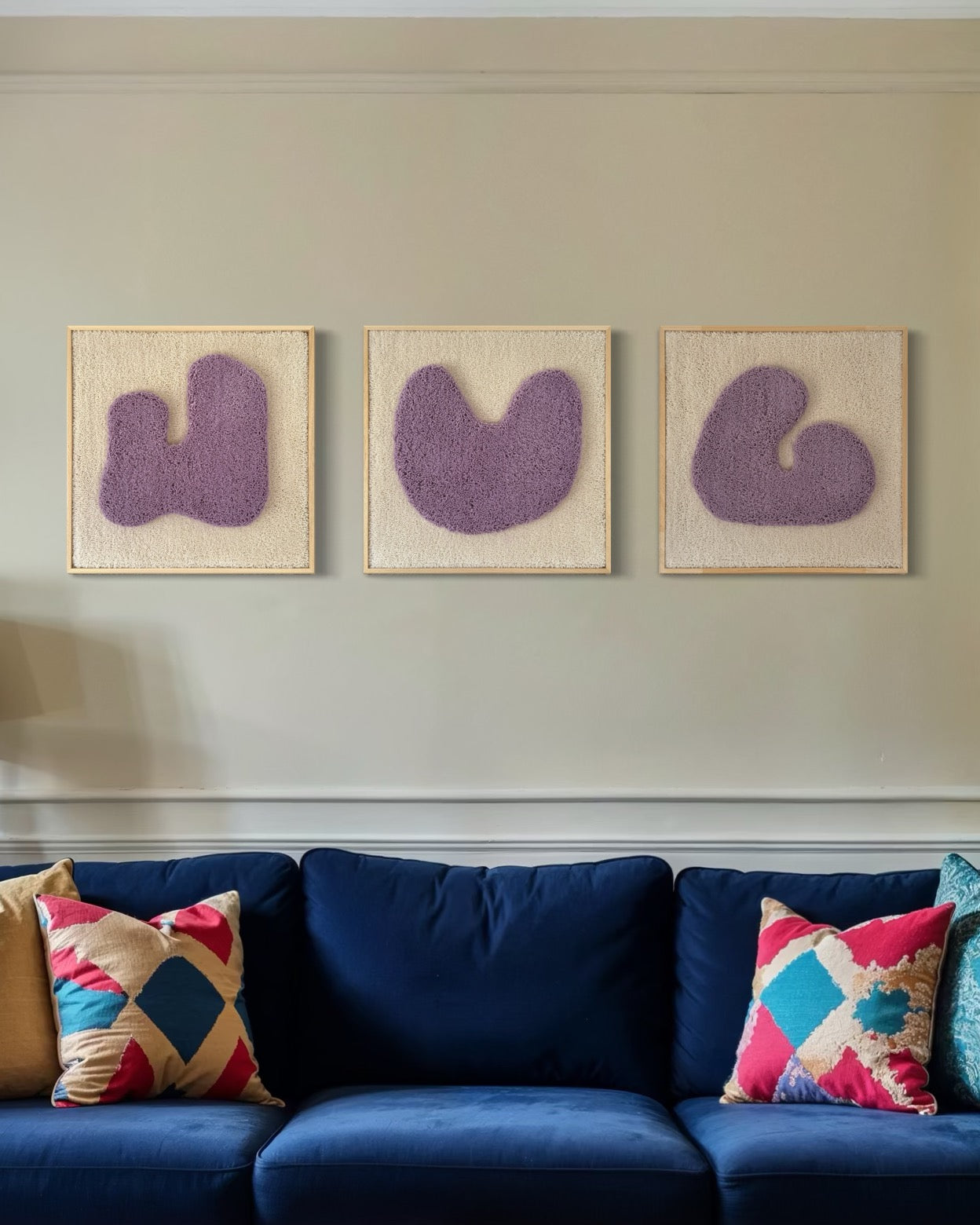 Its rounded form feels both modern and whimsical, making it a versatile piece for any room. Part of a tryptic, it can be displayed on its own or with its siblings.